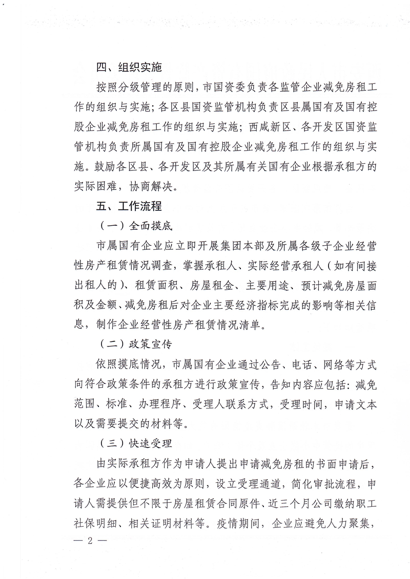 西安市國資委關(guān)于做好減免國有企業(yè)房屋租金工作有關(guān)事項(xiàng)的補(bǔ)充通知