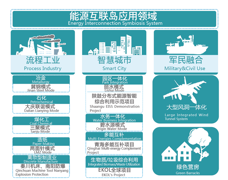 分布式能源智能綜合利用項目——能源互聯島方案,指分布在用戶端的能源綜合利用系統,基于區域能源物料的供給稟賦,在滿足區域能源合理需求的前提下,采用互聯網思維,因地制宜、量體裁衣,綜合利用供給側能源條件及資源條件,通過技術、商業模式創新,提供水、冷、暖、電、氣、固廢處理(生活垃圾、餐廚垃圾及污泥等)等能源(量)全生命周期一體化綜合定制化解決方案,并利用智能管理和互聯網技術建立智慧管理系統,從而提升資源循環和自我供給及處理能力,實現土地集約、設備集約、功能集約及運營集約。